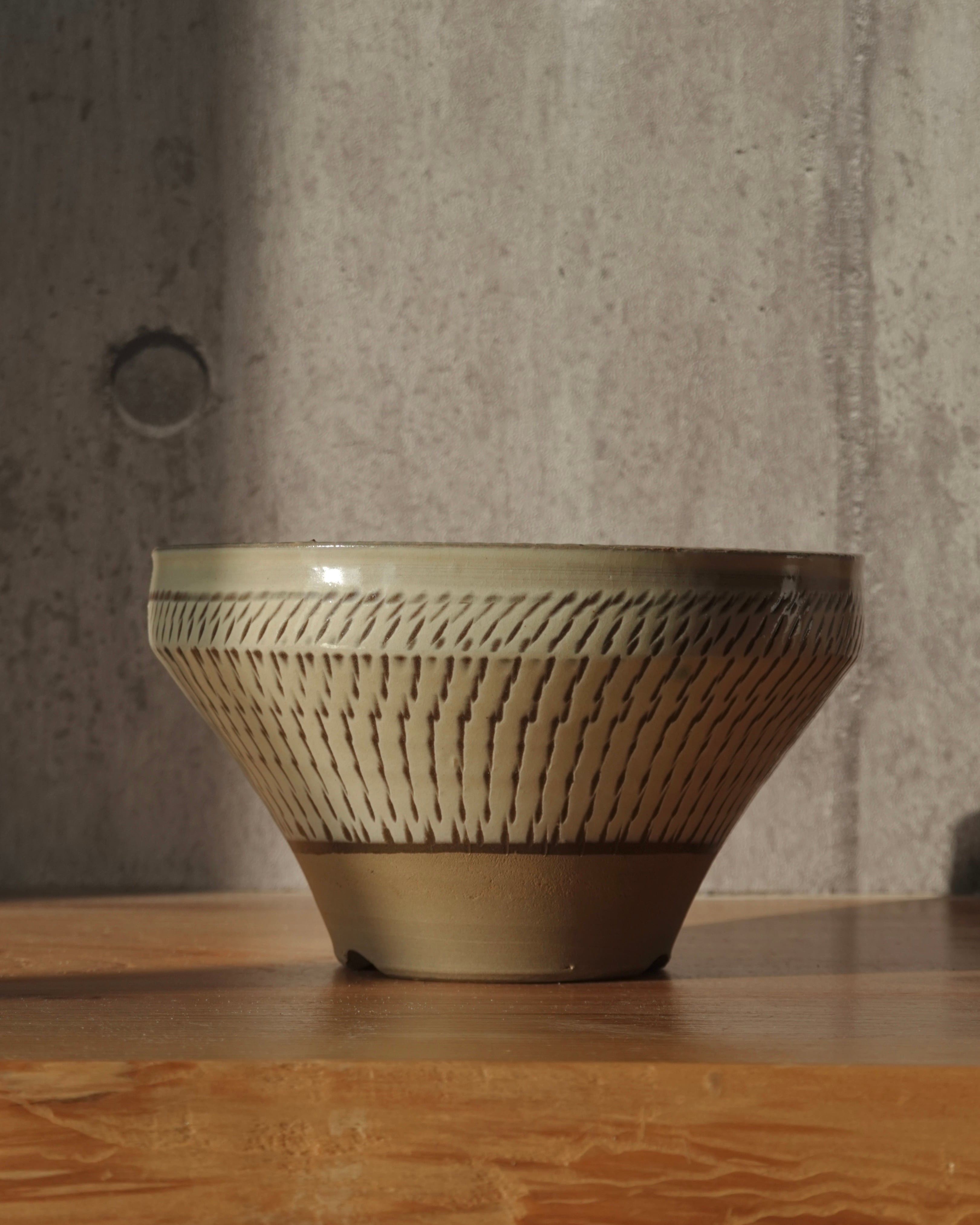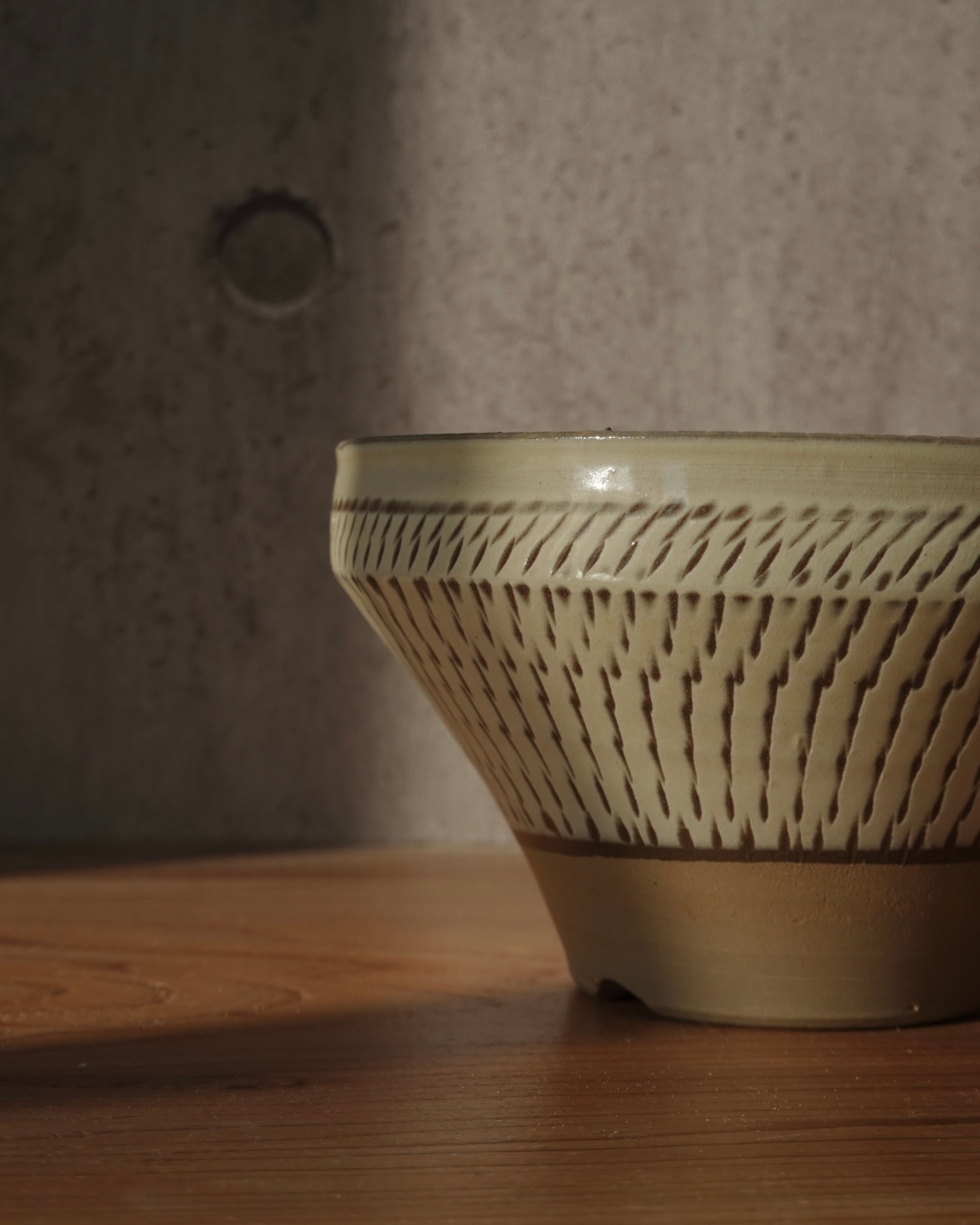 飛び鉋で模様があしらわれた中鉢。口縁部分にも細やかに柄が施されています。