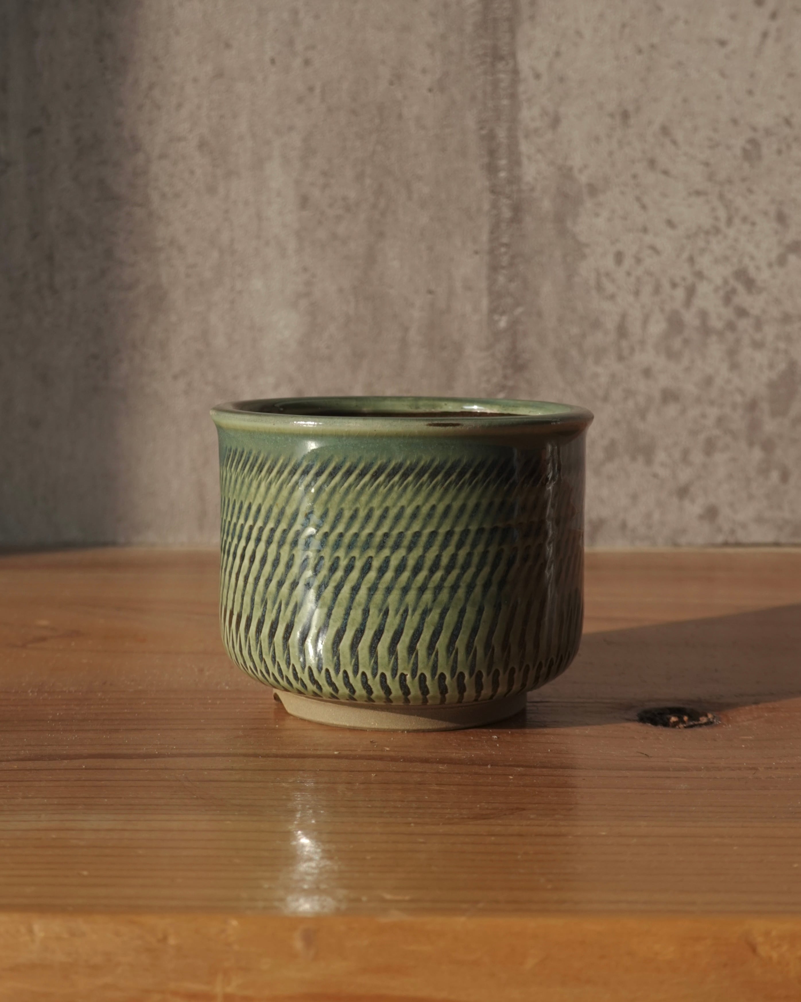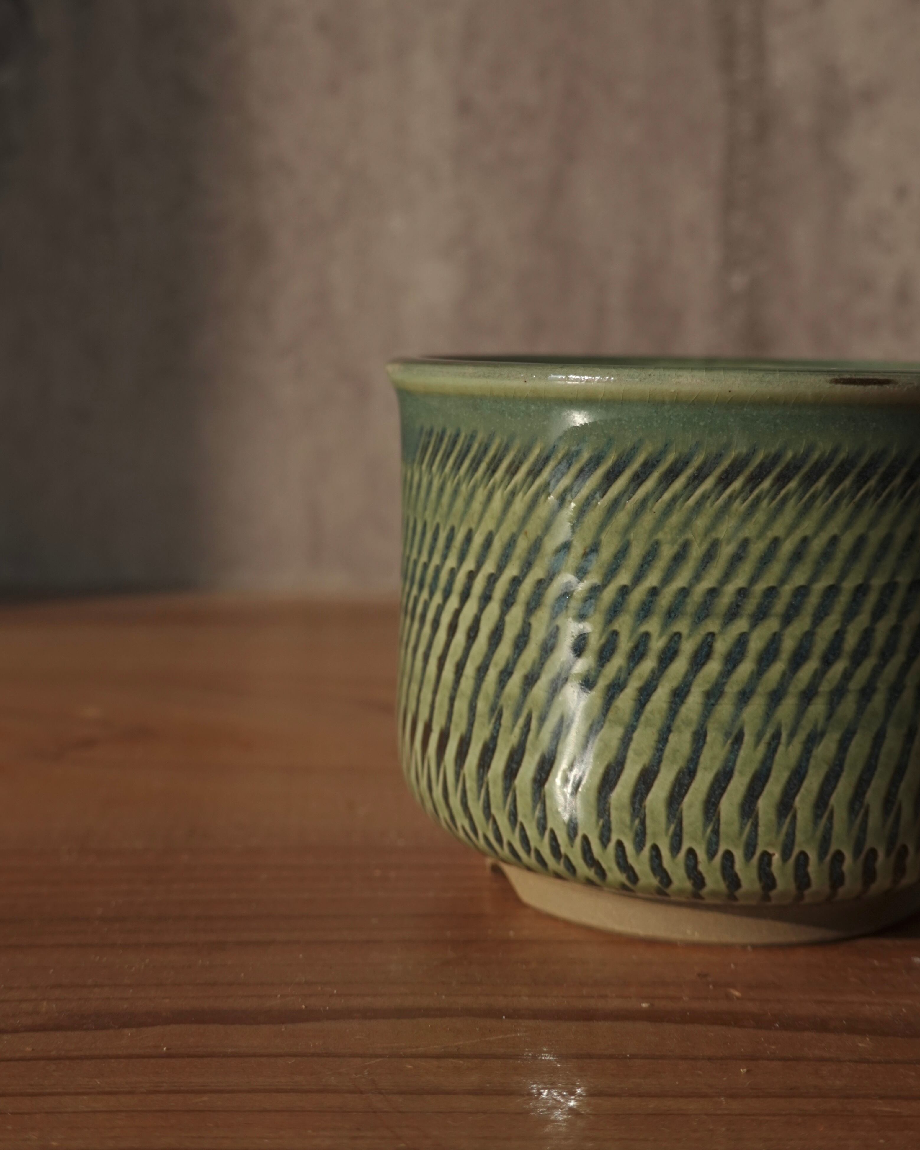湯呑みのようなシルエットに、飛び鉋で模様があしらわれた小鉢です。