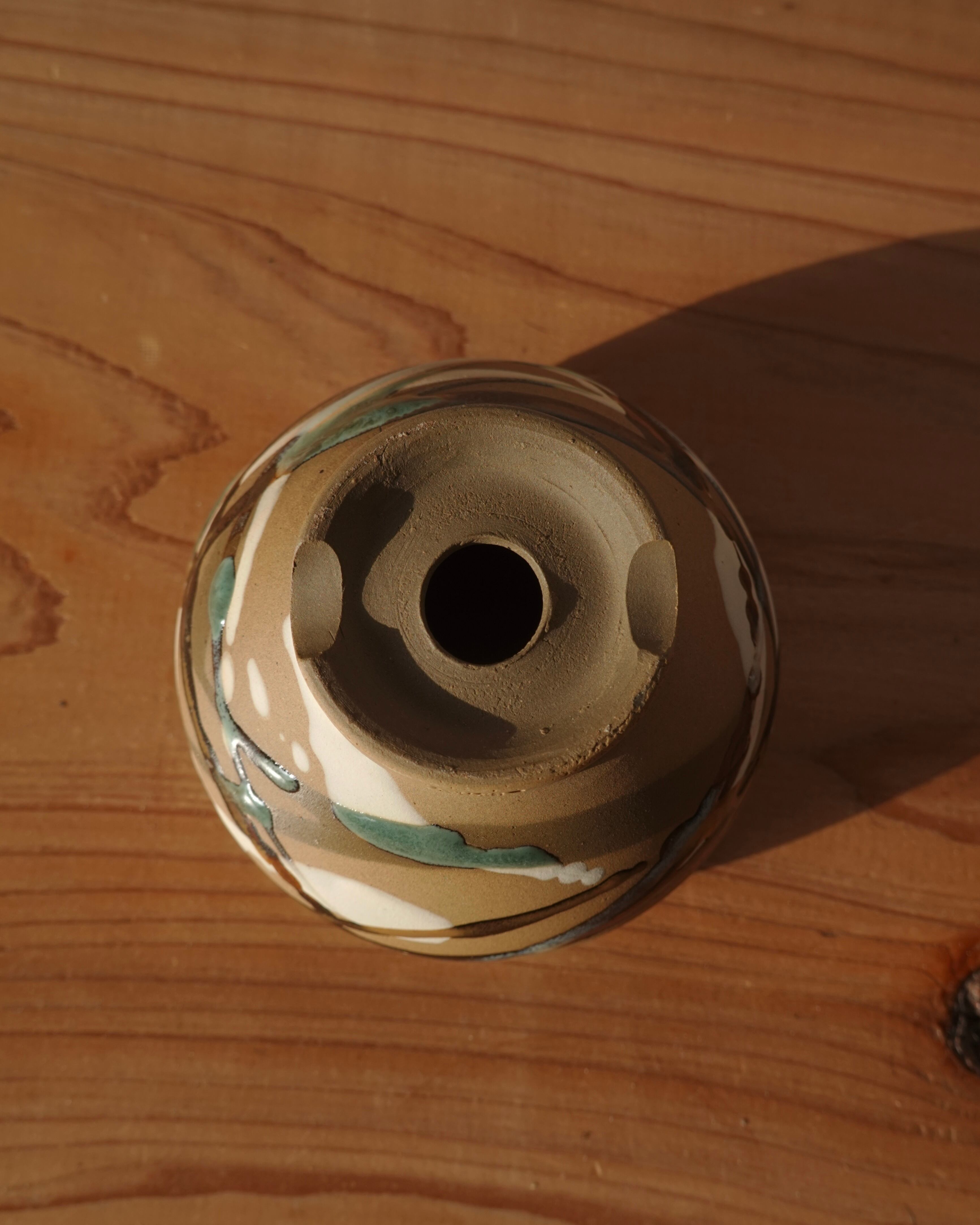 ざらりとした素焼き部分と、艶のある釉薬のかかった部分の異素材感が楽めます。