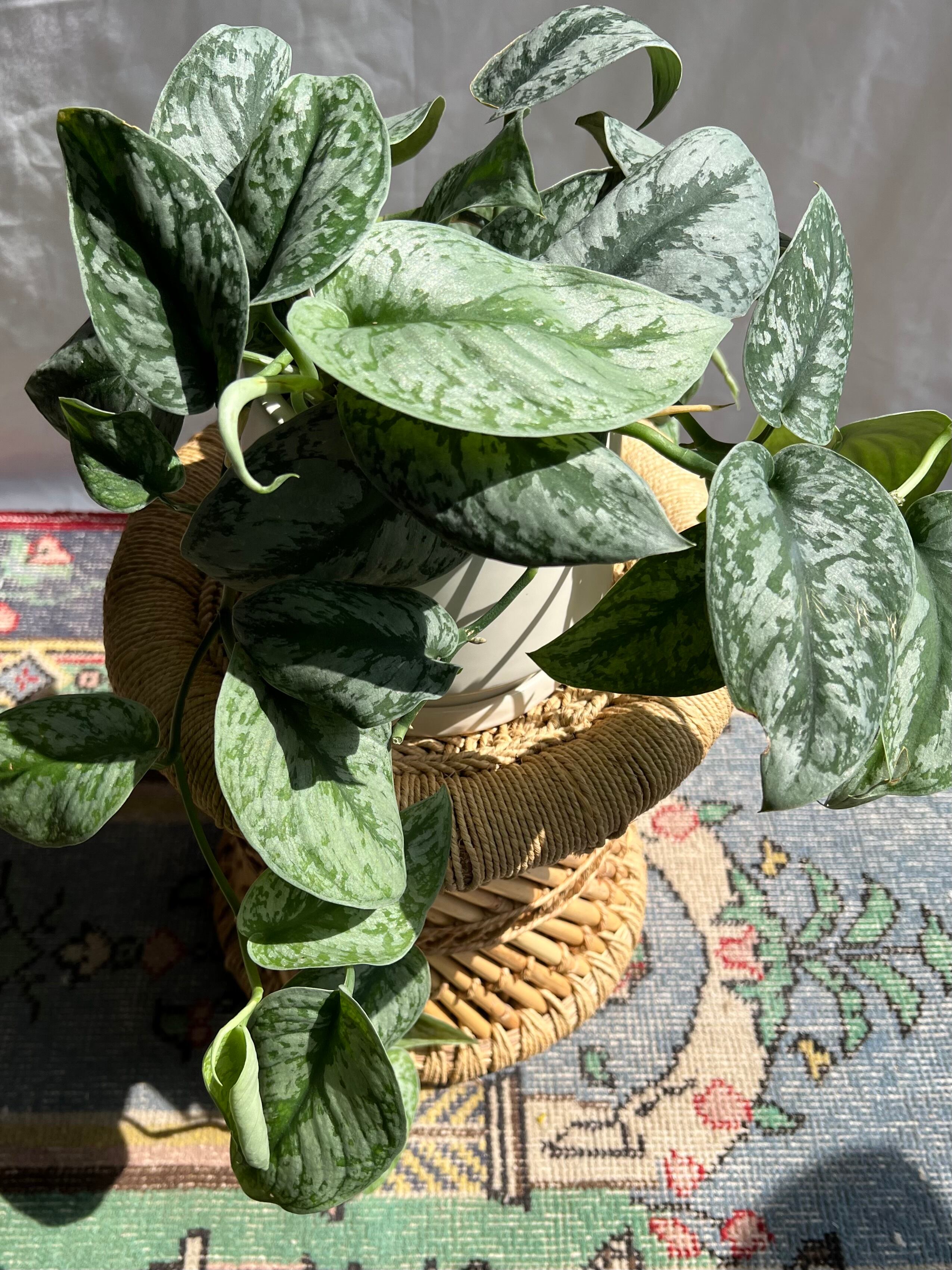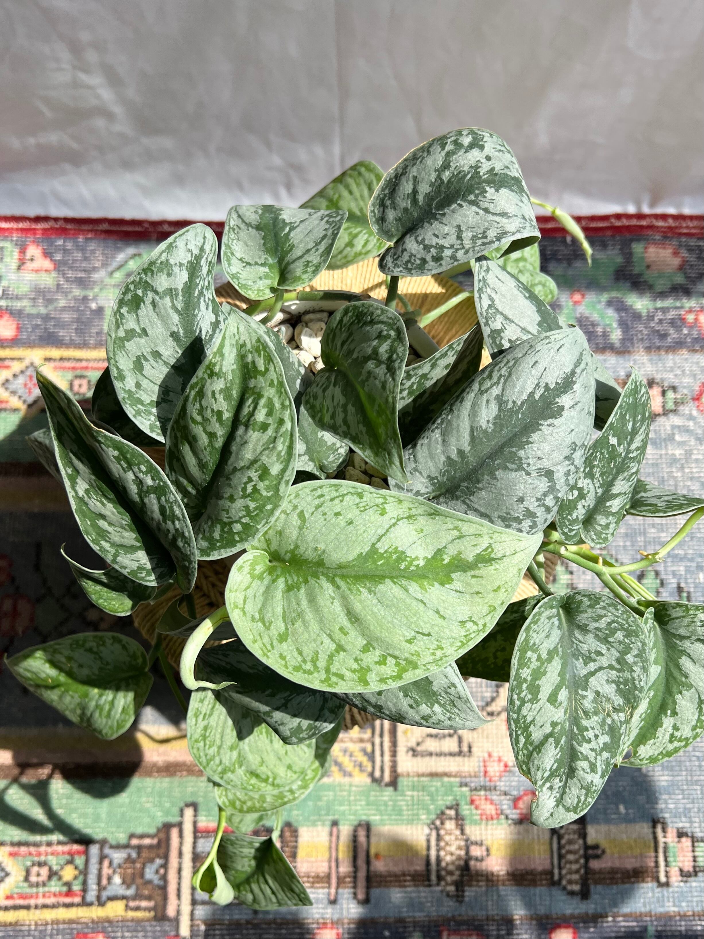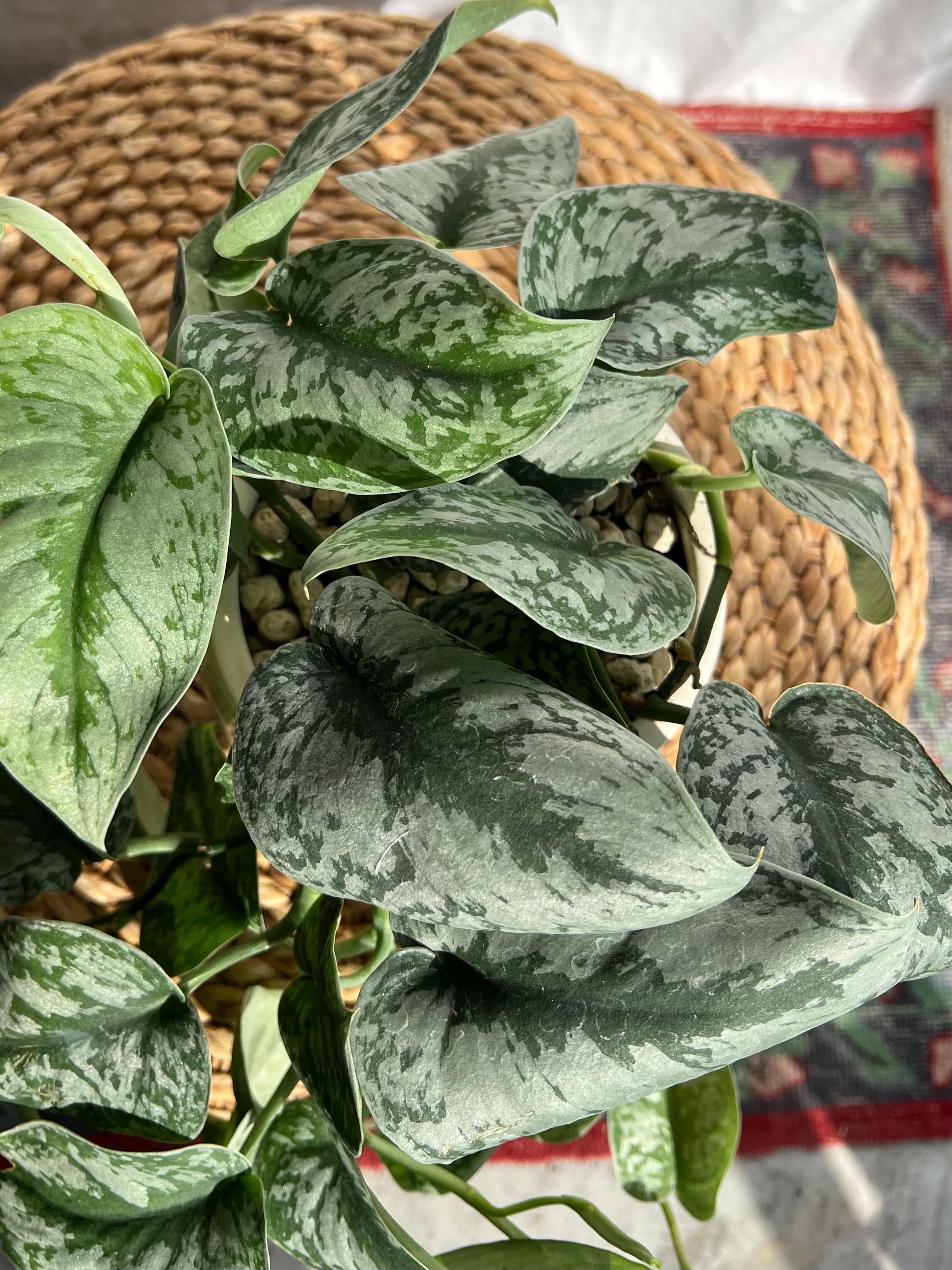 厚い銀色の斑と深い緑の葉が熱帯らしく美しい姿のスキンダプサス。