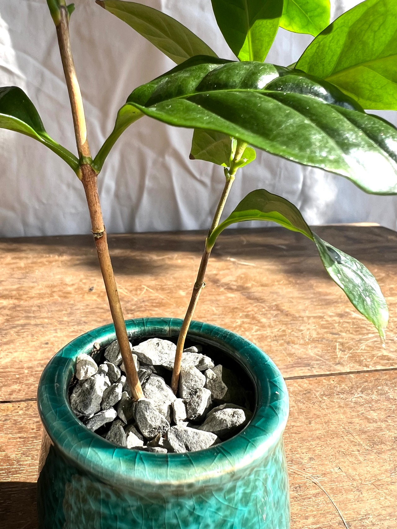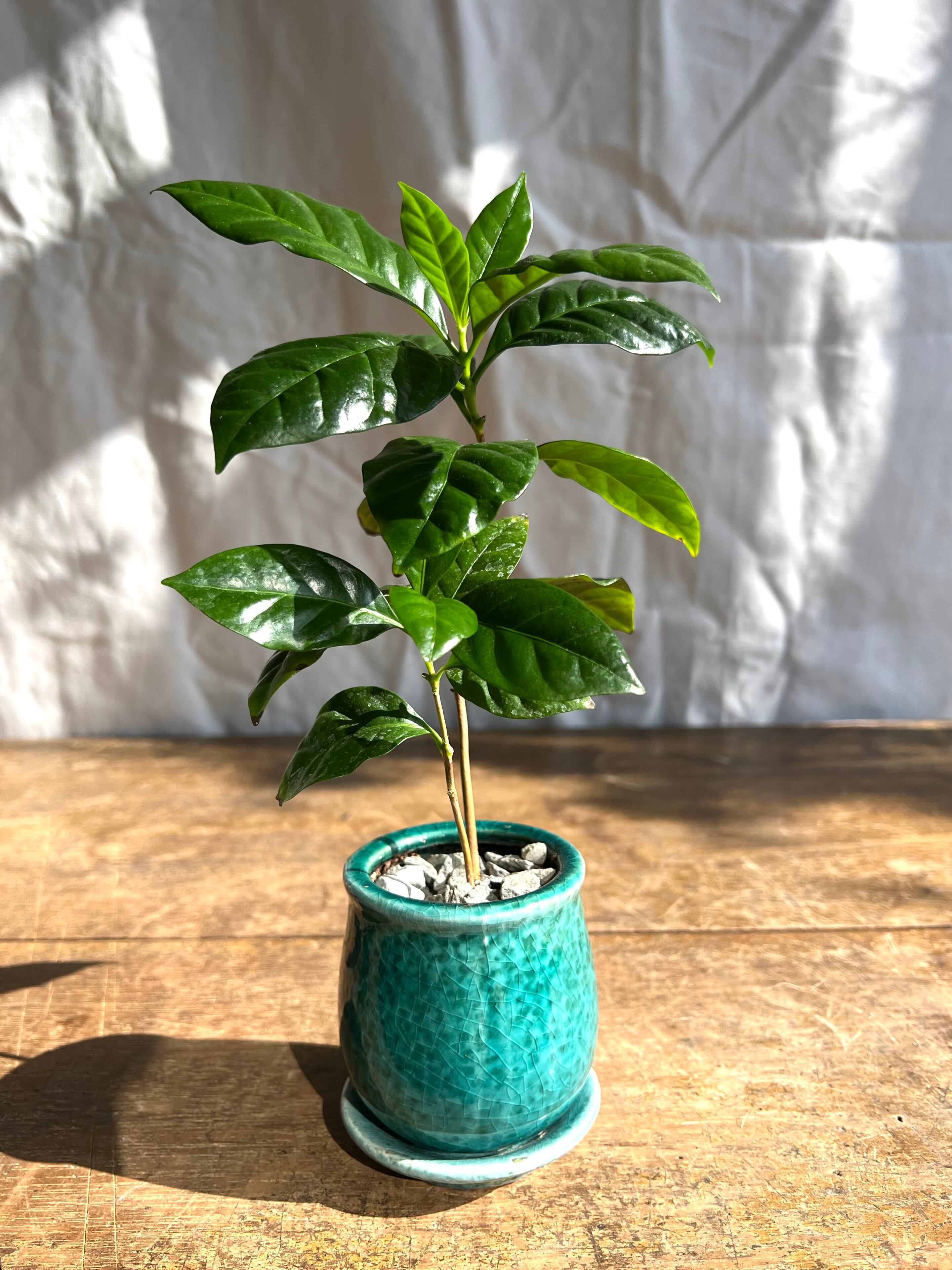 艶やかな葉が綺麗で上手に育てれば香のある白い花と鮮やかな赤い実を楽しむこともできることから人気の植物。