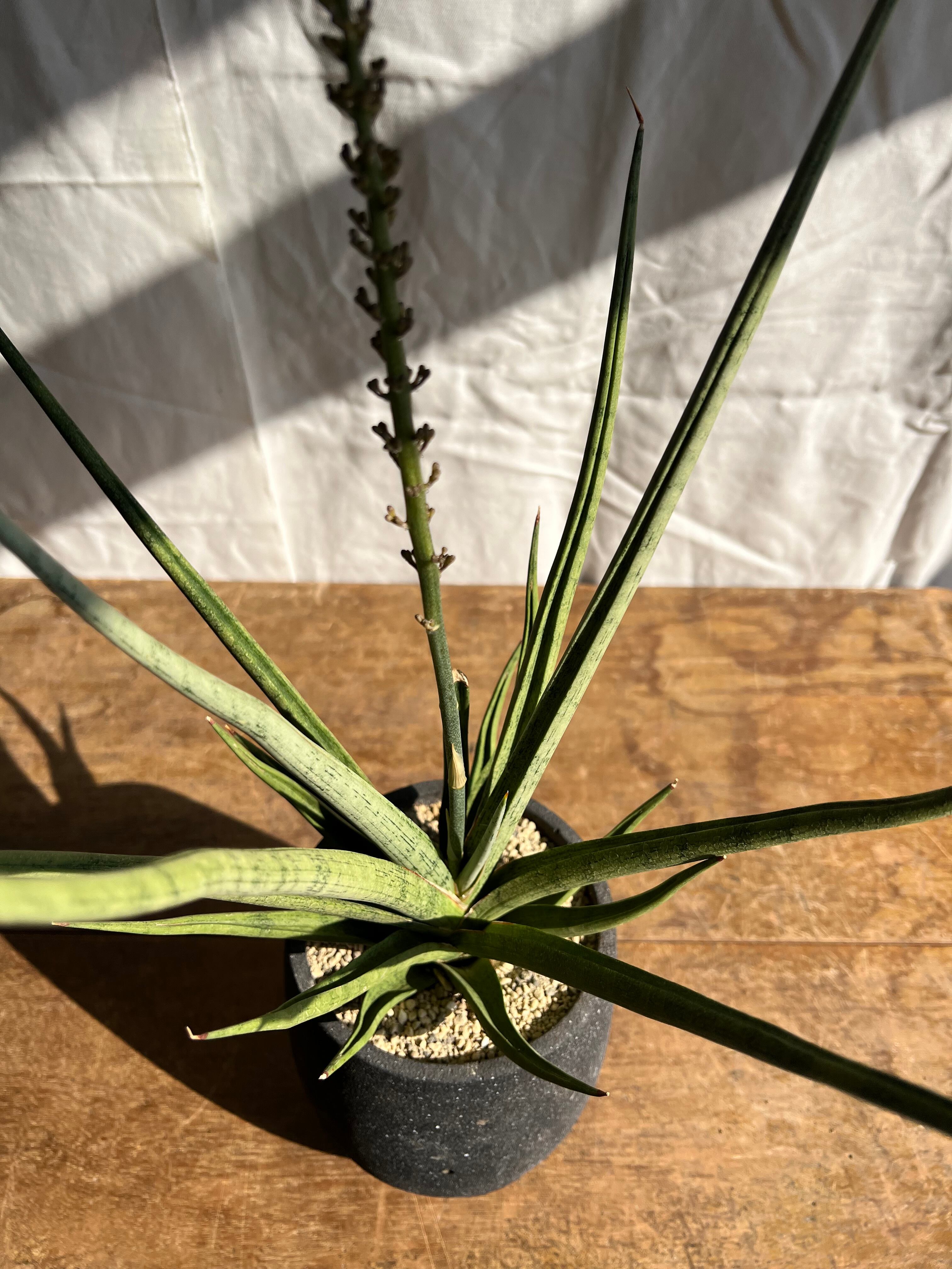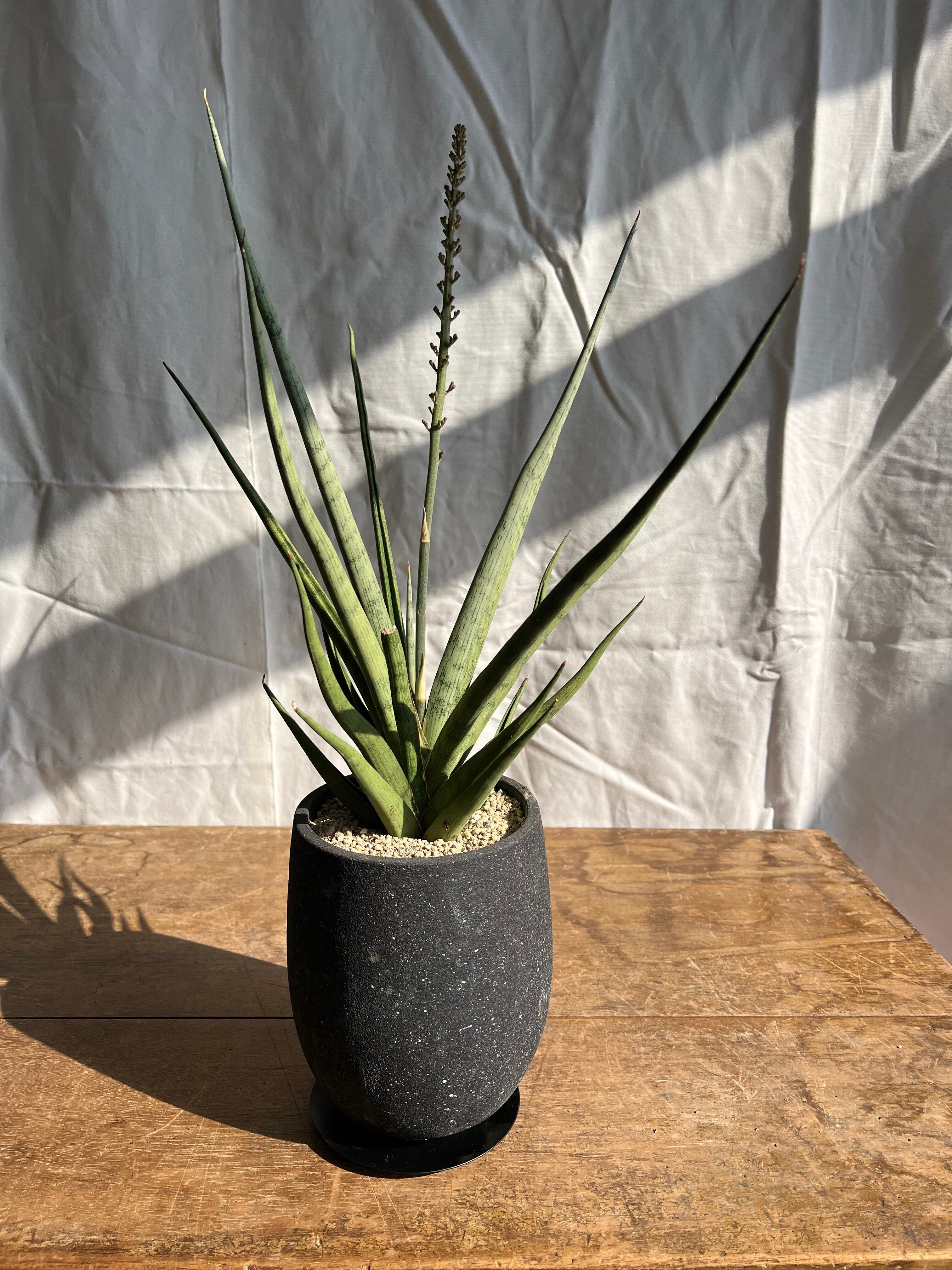 細く長い葉をロゼット状に広げるスタイリッシュな印象のサンスベリア。