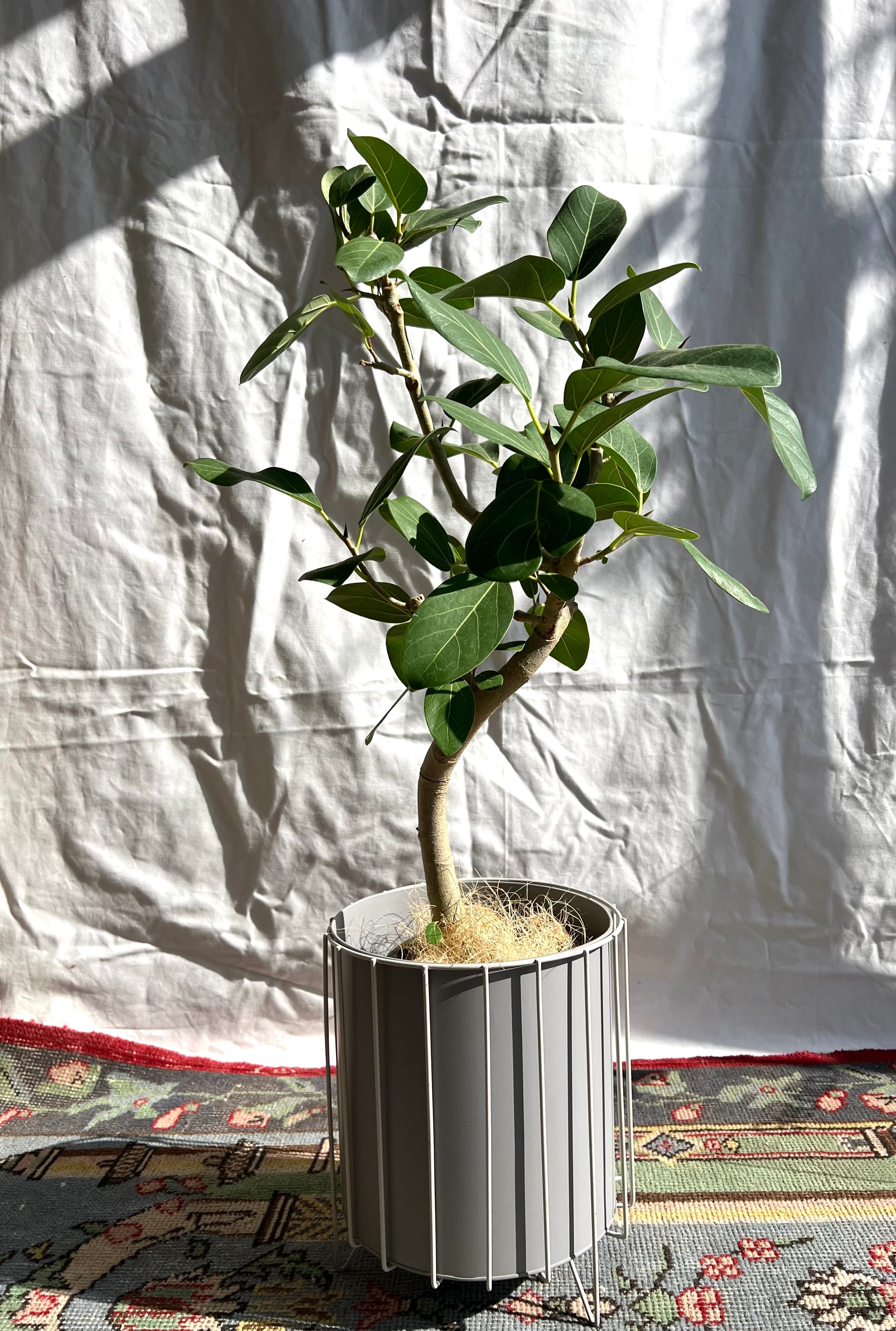 グレーのシンプルな鉢カバーとセット。