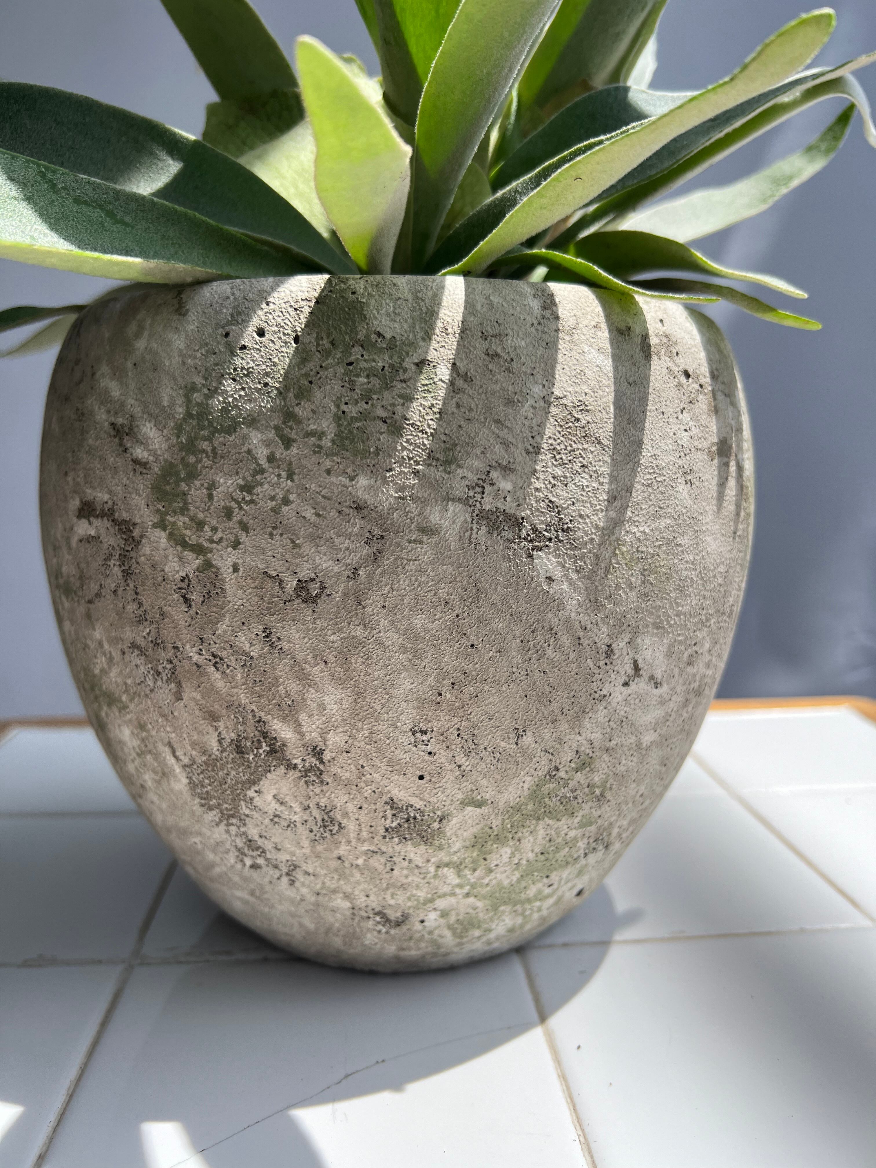 経年変化を楽しむことのできるヴィンテージ調の鉢に植え込み済み。
