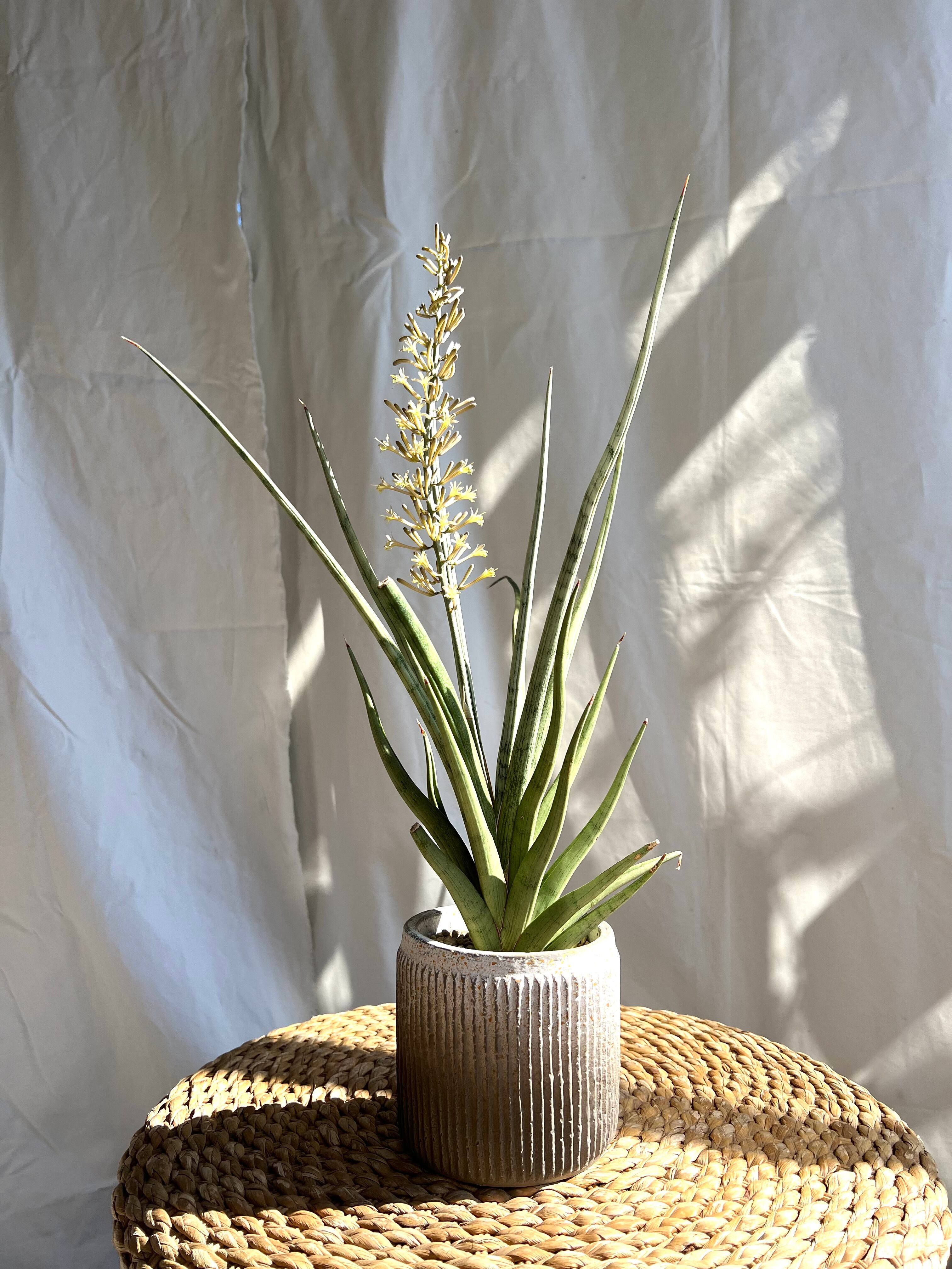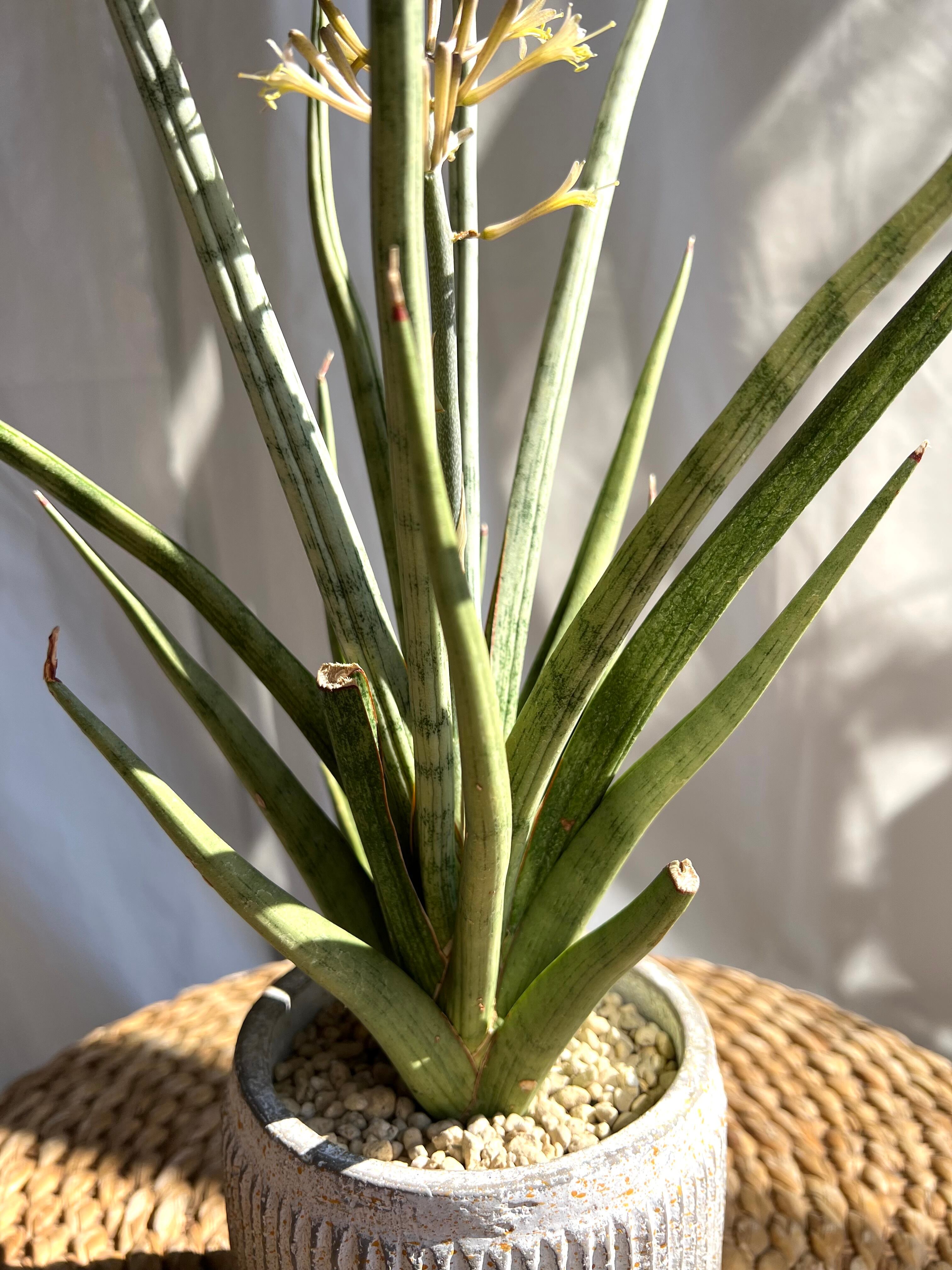 細く長い葉をロゼット状に広げるスタイリッシュな印象のサンスベリア。