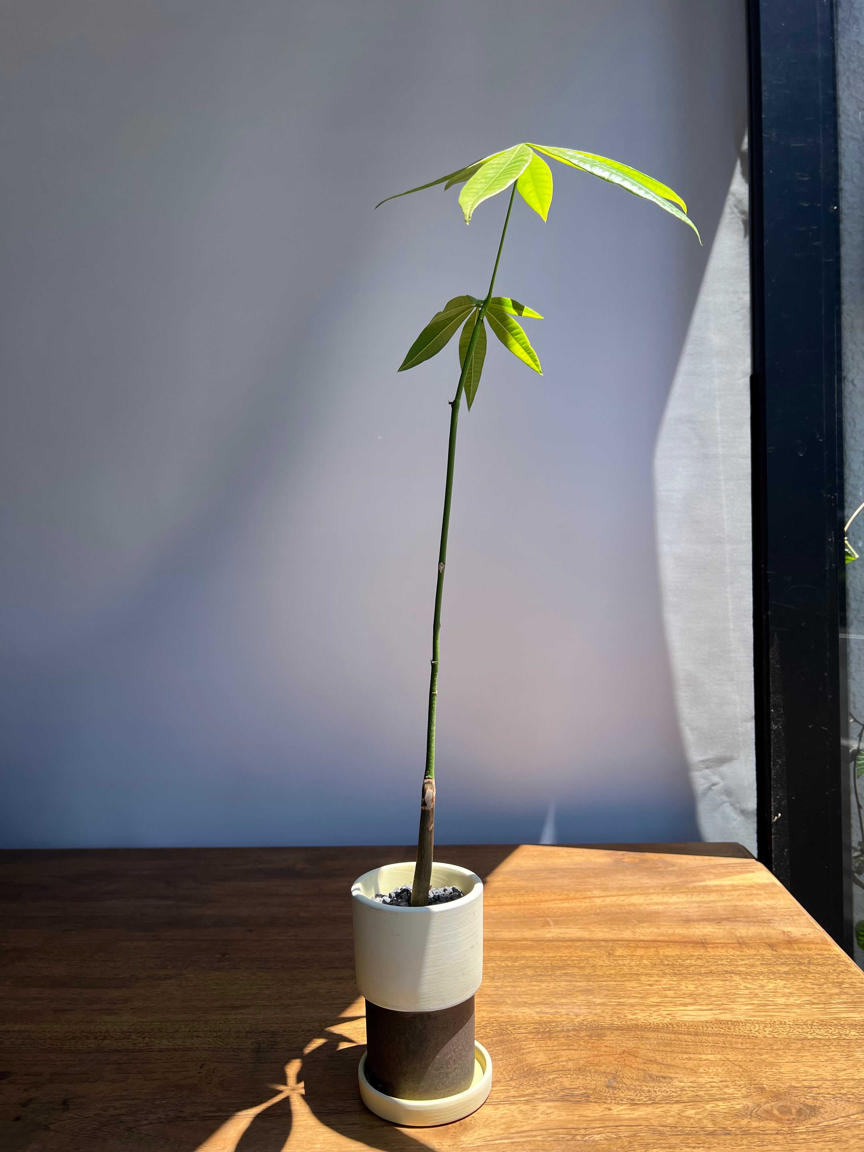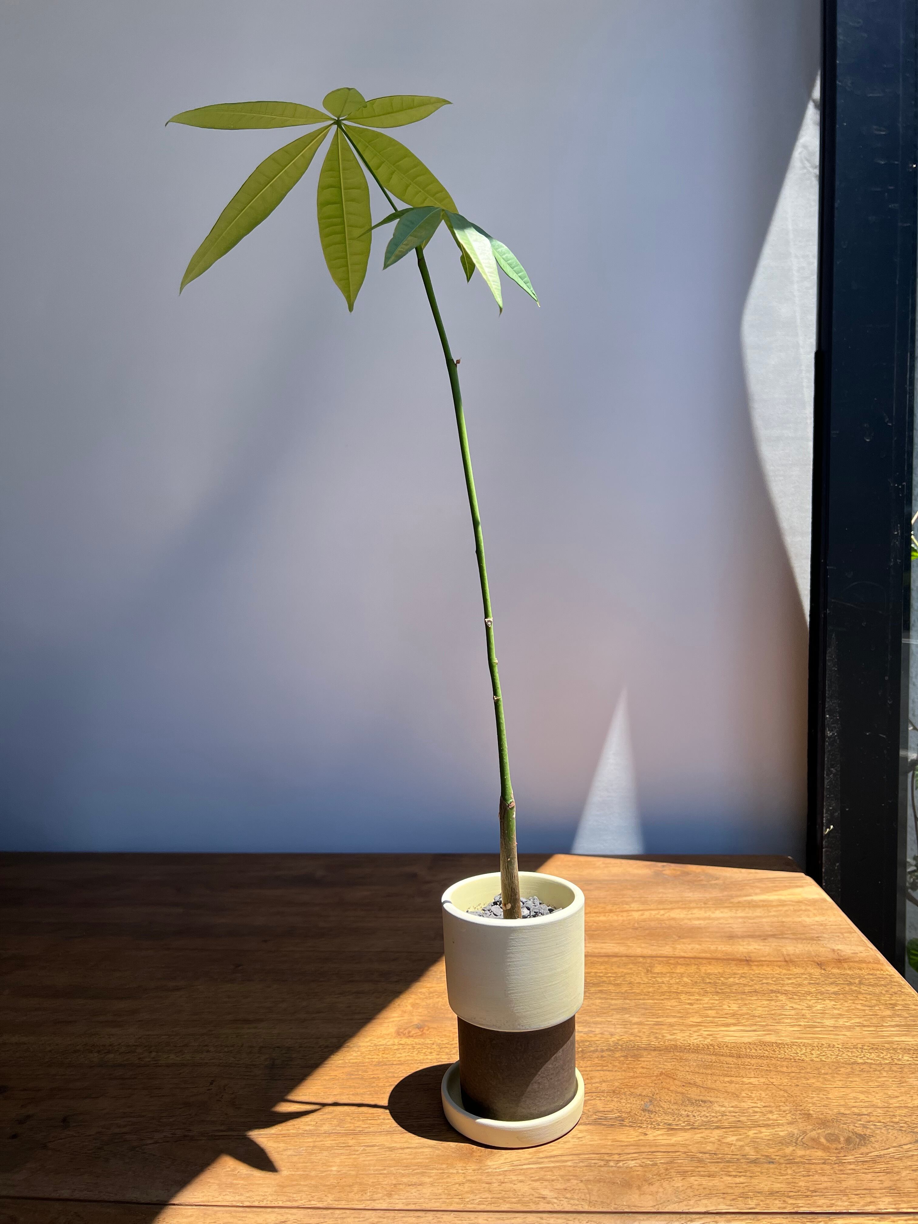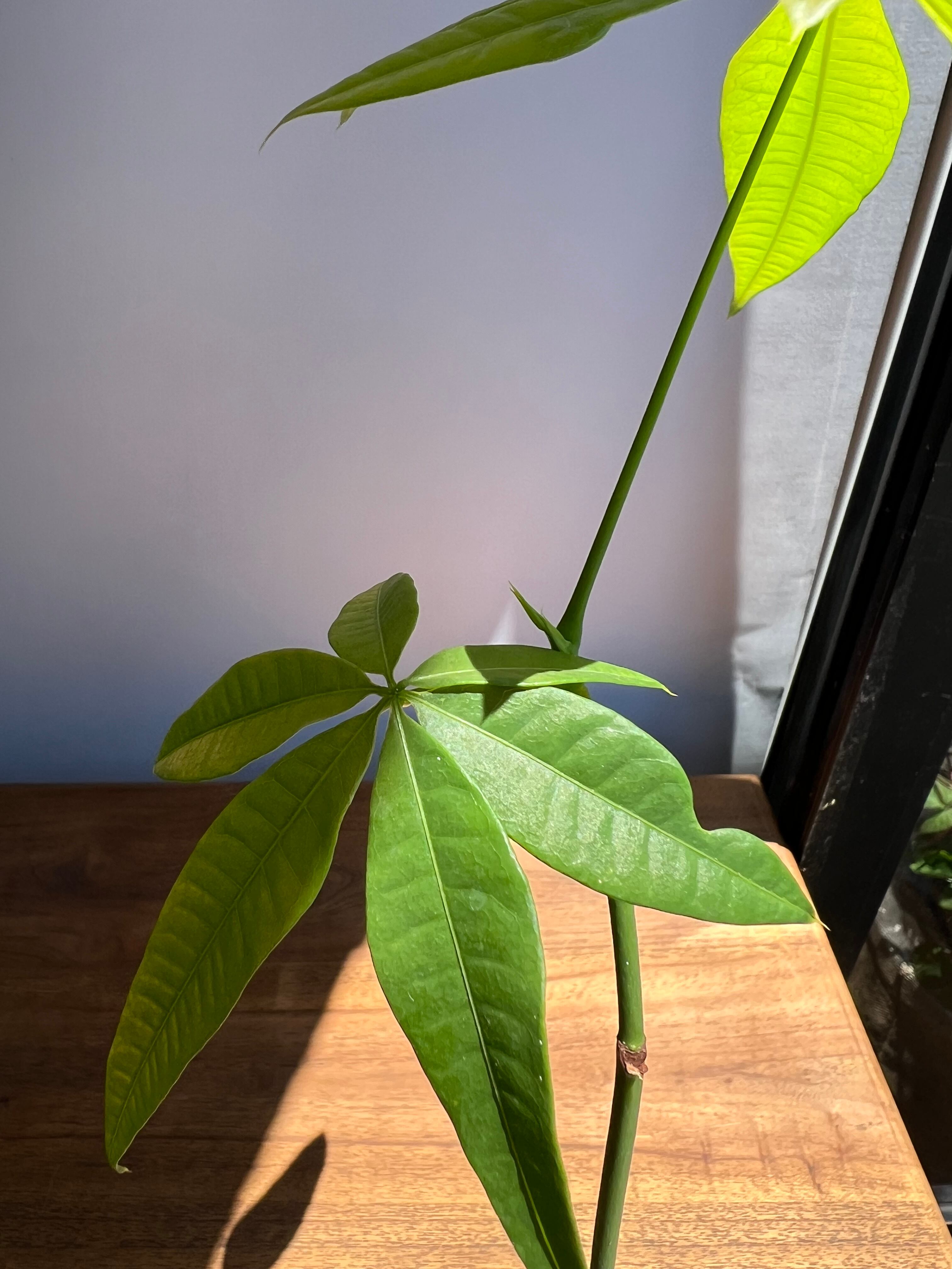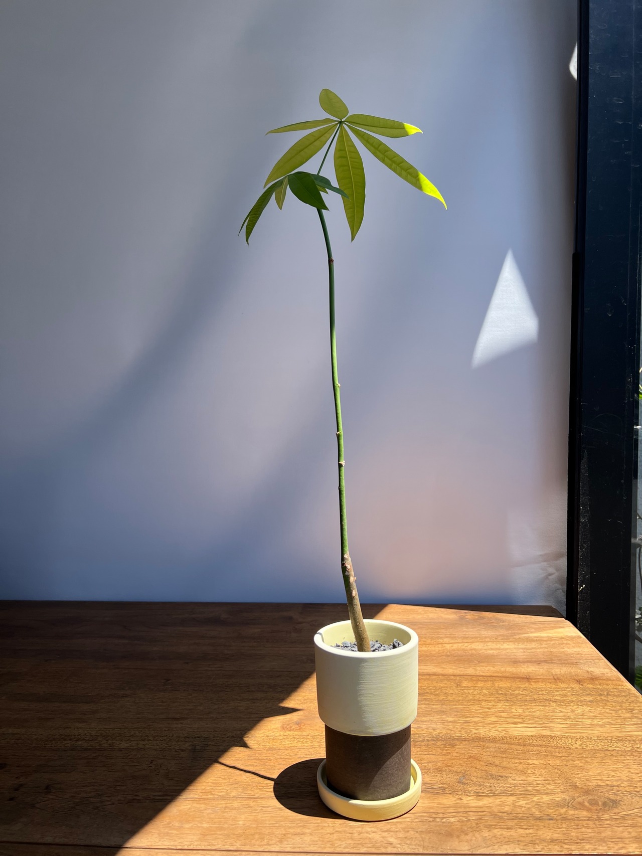 長く伸びた枝の先から大きな葉を展開させる姿が魅力のパキラ。