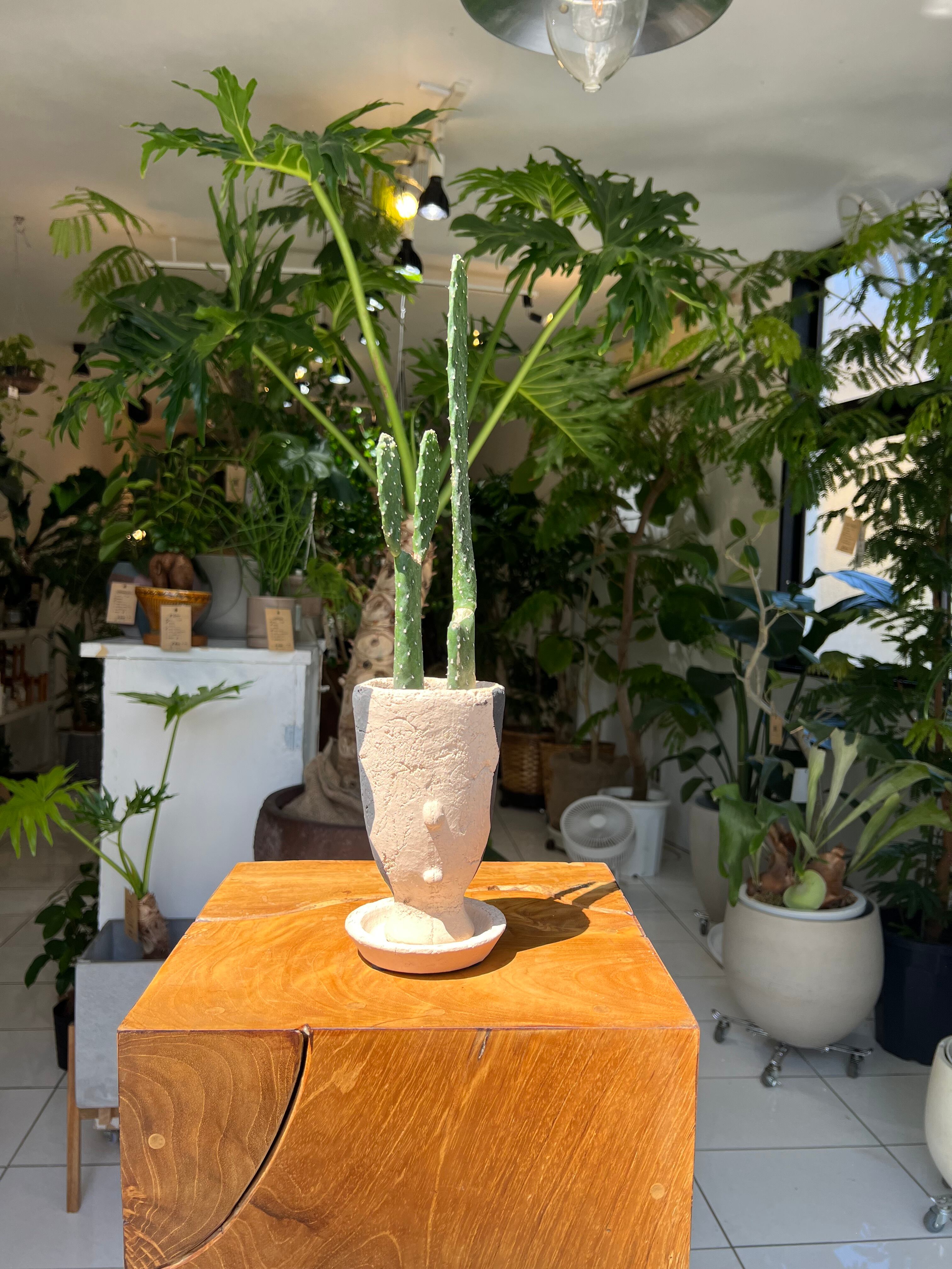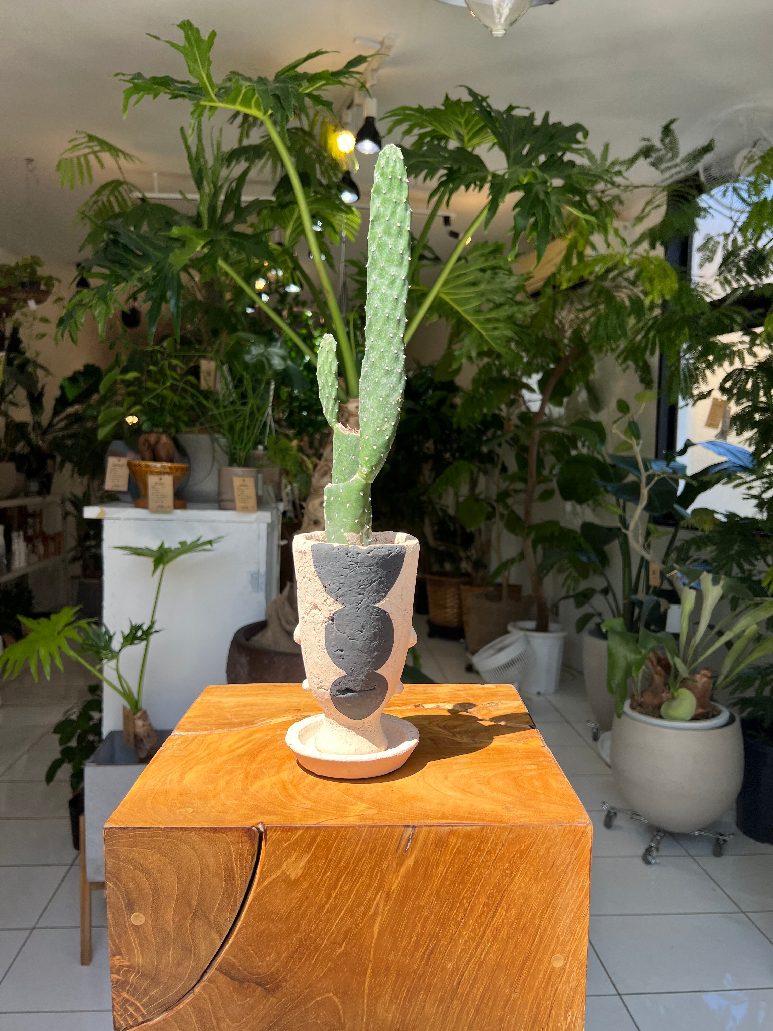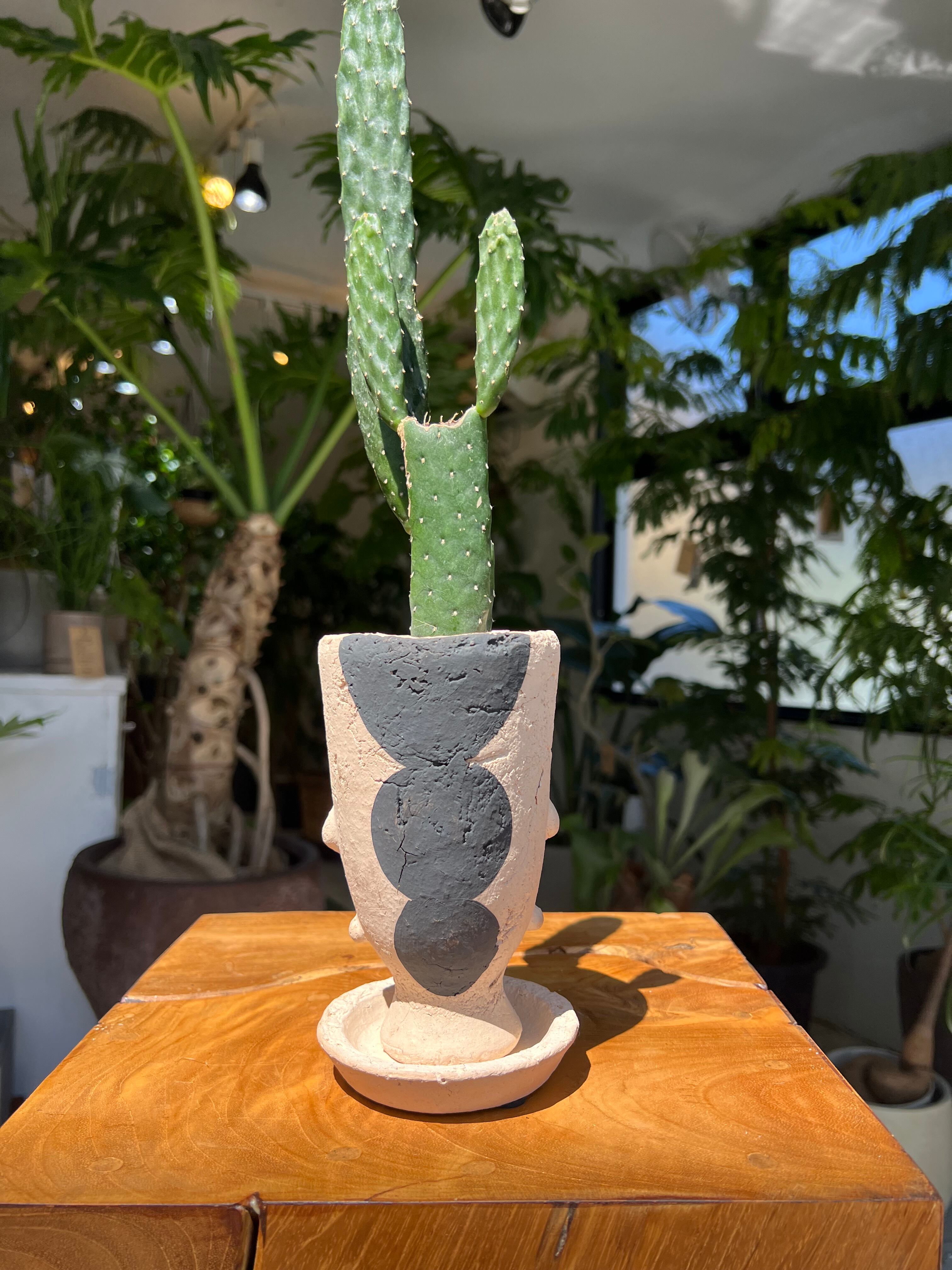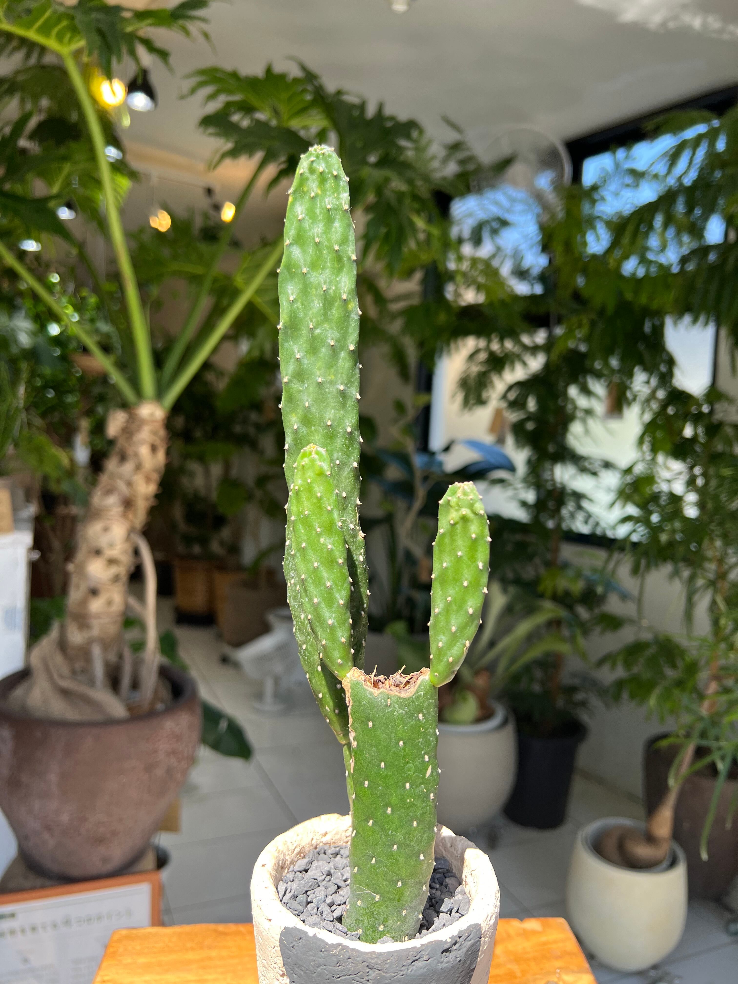 墨烏帽子はウチワサボテンの仲間で、棘が少ないサボテンです。