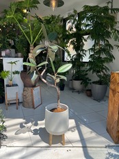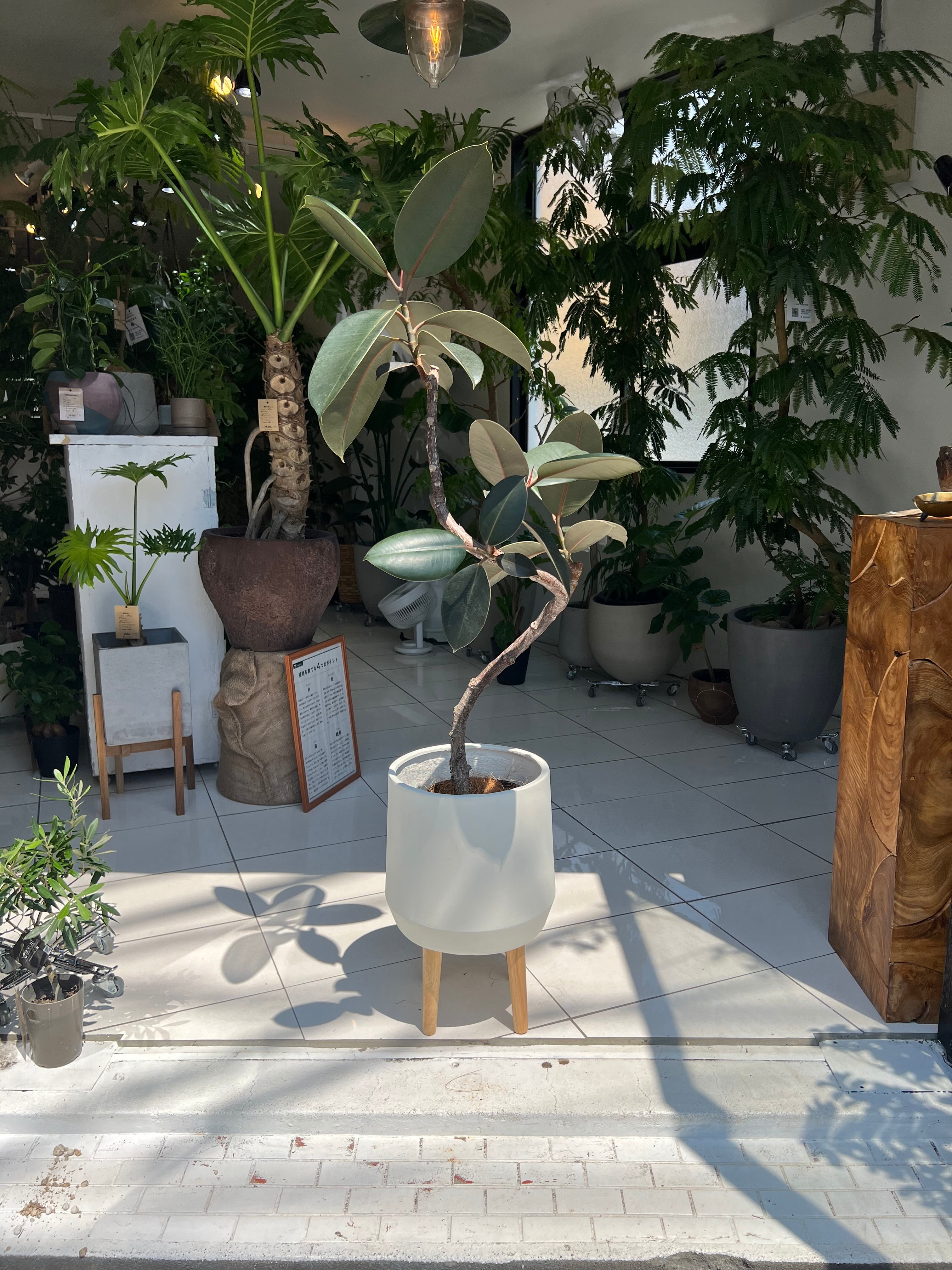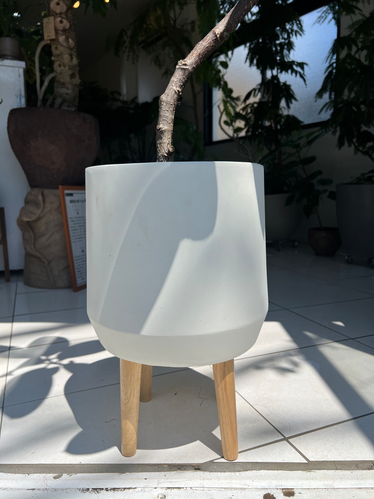 ウッドの足が付いたホワイの鉢カバーとセット。