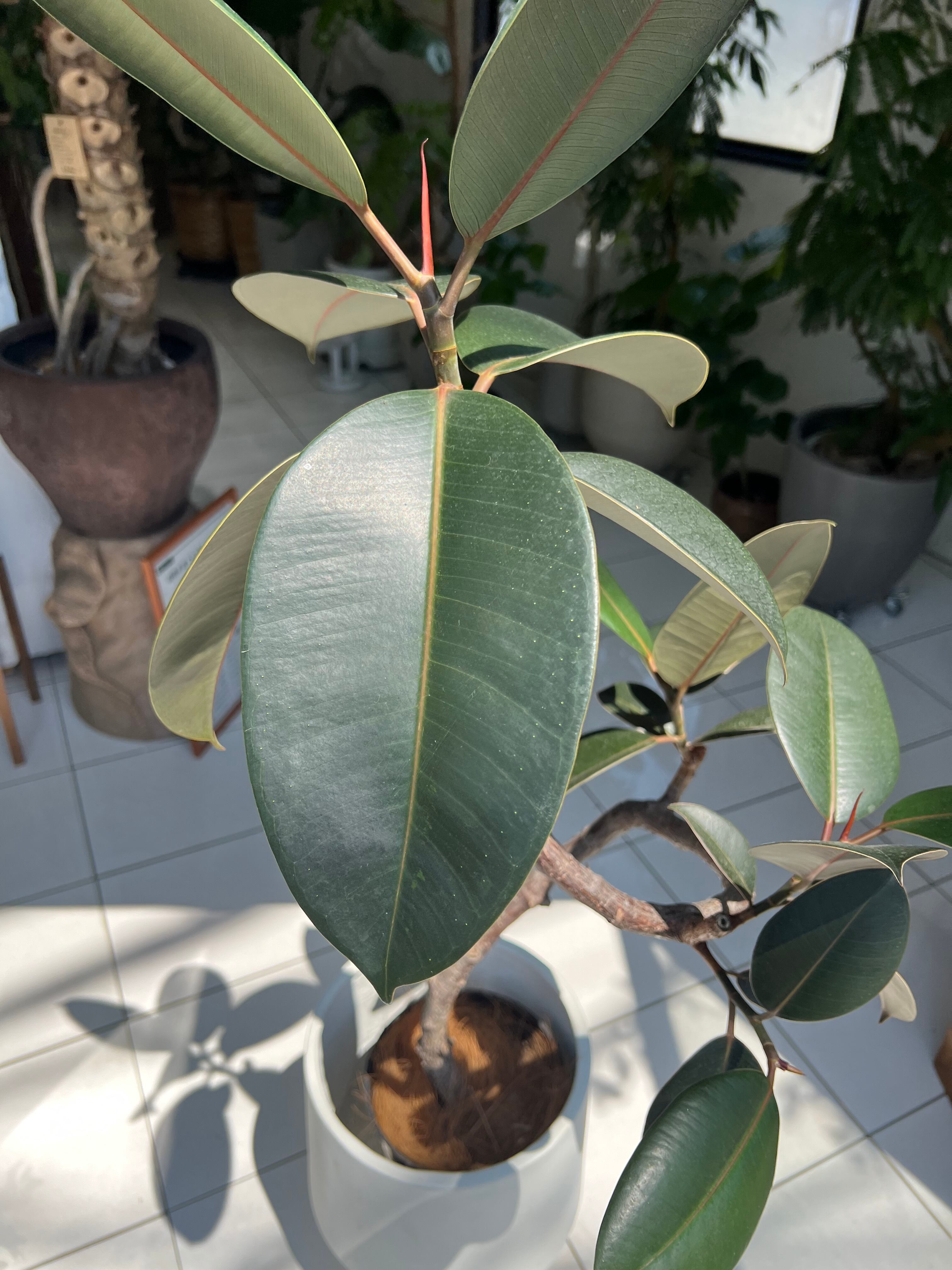 フィカス・バーガンディは黒に近い深緑色の葉と、